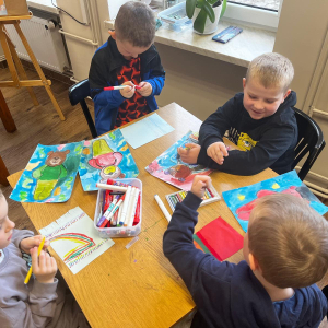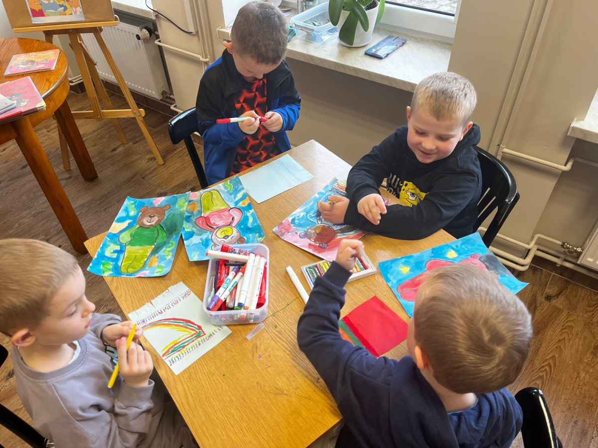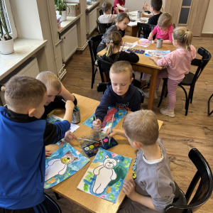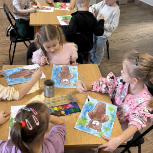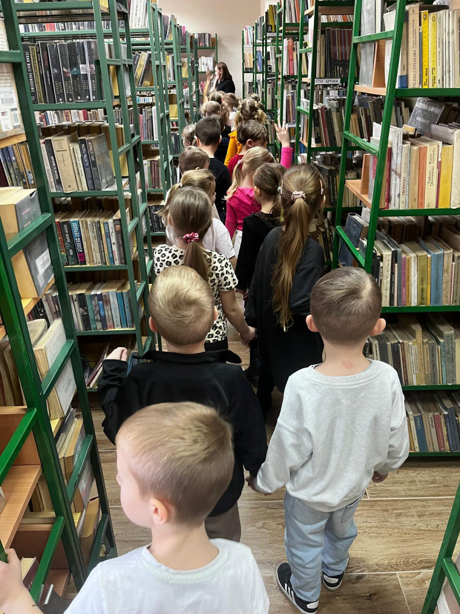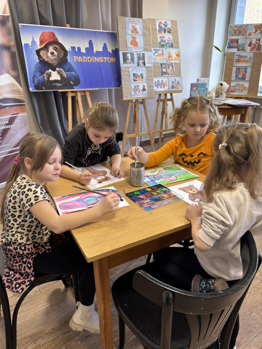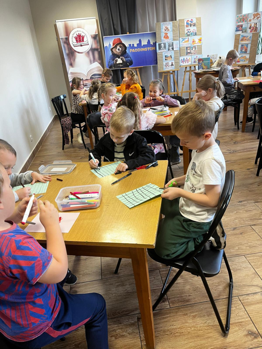 Na zakończenie ułożyliśmy nasze misie do snu i wykonaliśmy kreatywne prace plastyczne – „misie pod kołderką”. Nie zabrakło też wyjątkowej atrakcji – odwiedzin książkowego labiryntu, czyli spaceru po magazynie i wypożyczalni! Dziękujemy przedszkolakom za wspólną zabawę i cudowną, misiową atmosferę!