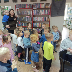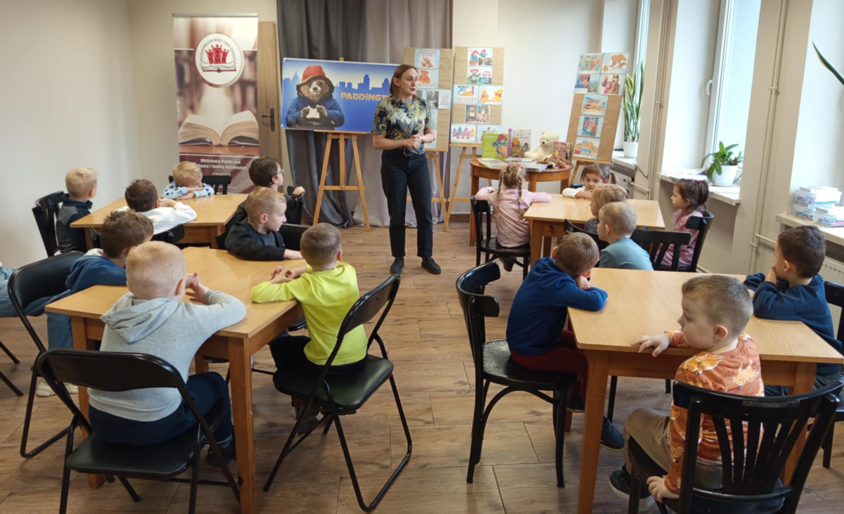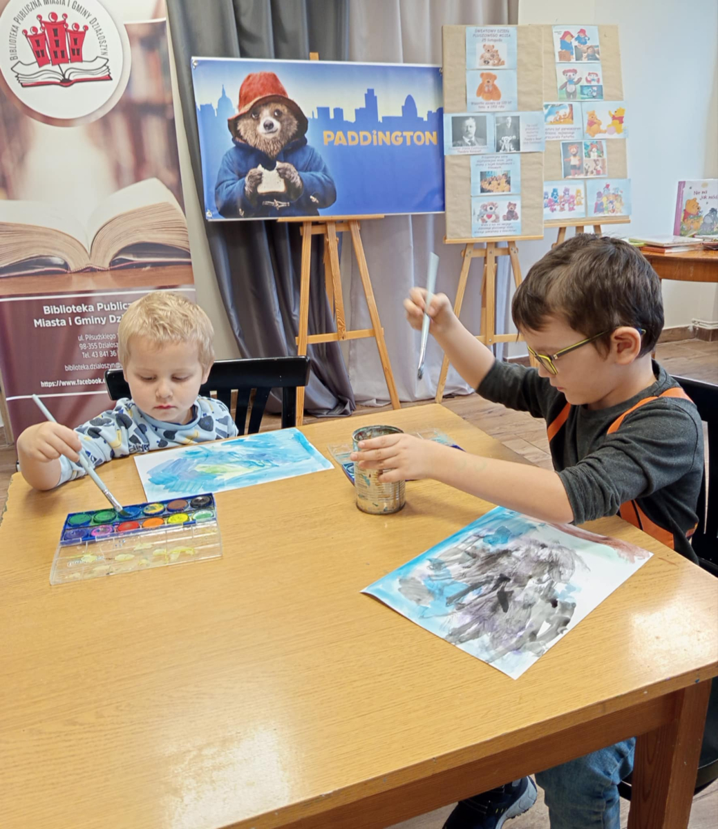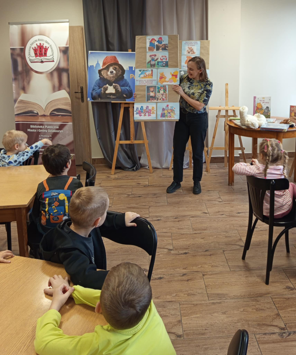 14 listopada po raz pierwszy gościliśmy w bibliotece grupę 4-latków z Miejskiego Przedszkola w Działoszynie – i była to wizyta pełna ciekawości, radości i misiowych tematów! Najmłodsi czytelnicy zwiedzili całą bibliotekę, a w najważniejszym miejscu – wypożyczalni – dowiedzieli się, jak można zapisać się do biblioteki oraz gdzie znajdują się książki, które będą mogli wypożyczać. Następnie ruszyliśmy do książkowego labiryntu, czyli naszego magazynu, gdzie dzieci mogły zobaczyć, jak wygląda biblioteka „od kuchni”. Rozmawialiśmy także o misiach i niedźwiadkach – bohaterach bajek i książek, a przy okazji poznaliśmy wzruszającą historię z książki „Dziewczynka i miś”. Na zakończenie każdy stworzył własną pracę plastyczną – śpiącego misia pod kołderką.
