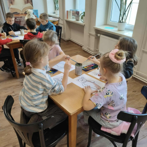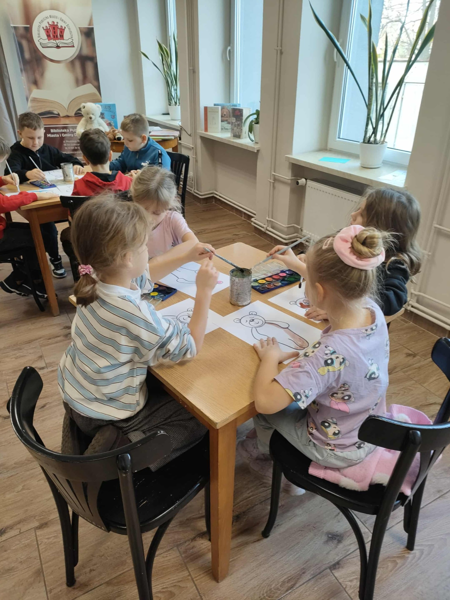 Dzieci poznały zasady korzystania z biblioteki, dowiedziały się, jak wygląda proces zapisu oraz jak odnaleźć książki dopasowane do ich wieku i zainteresowań. Wspólnie odwiedziliśmy niemal wszystkie zakątki biblioteki – od wypożyczalni, przez czytelnię, aż po książkowy labirynt w magazynie. Uczniowie mieli okazję zobaczyć, jak działa biblioteka „od środka” i przekonać się, że jest to miejsce pełne inspiracji, ciekawych historii i przygód czekających na odkrycie. Rozmawialiśmy także o misiach, które już niebawem będą obchodzić swoje święto. Przy tej okazji dzieci poznały wzruszającą historię z książki „Dziewczynka i miś”. Na zakończenie każdy stworzył własną pracę plastyczną – śpiącego misia pod kołderką. Dziękujemy za piękną wizytę i już zapraszamy na kolejne spotkania z książką!