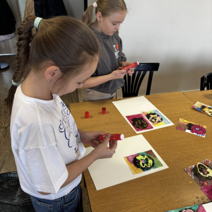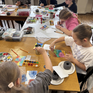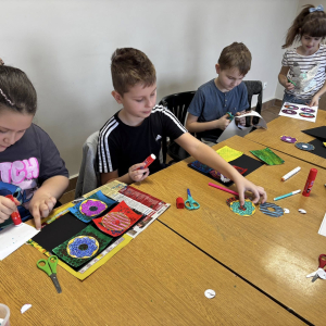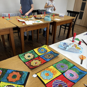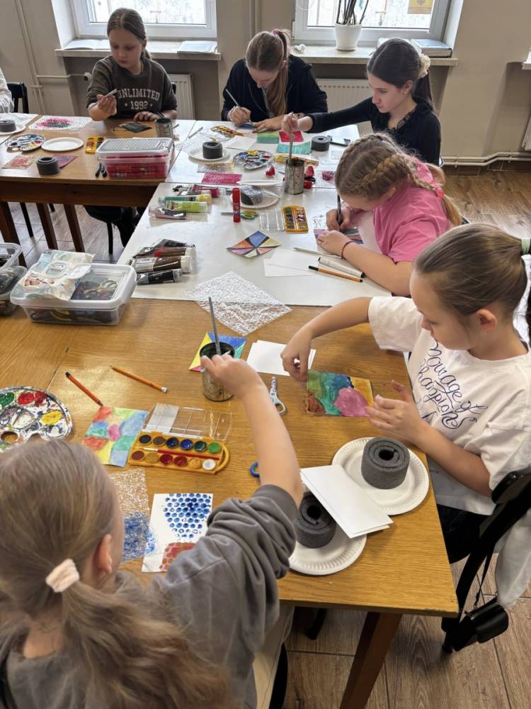 Starsza grupa pracowała w technice łączonej – delikatne tła akwarelowe zestawione z mocniejszym akrylem, a donuty odbijane przy pomocy okrągłej gąbki stworzyły niezwykle efektowne kompozycje.