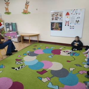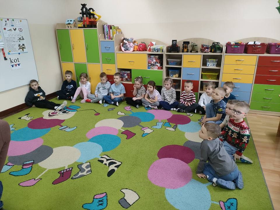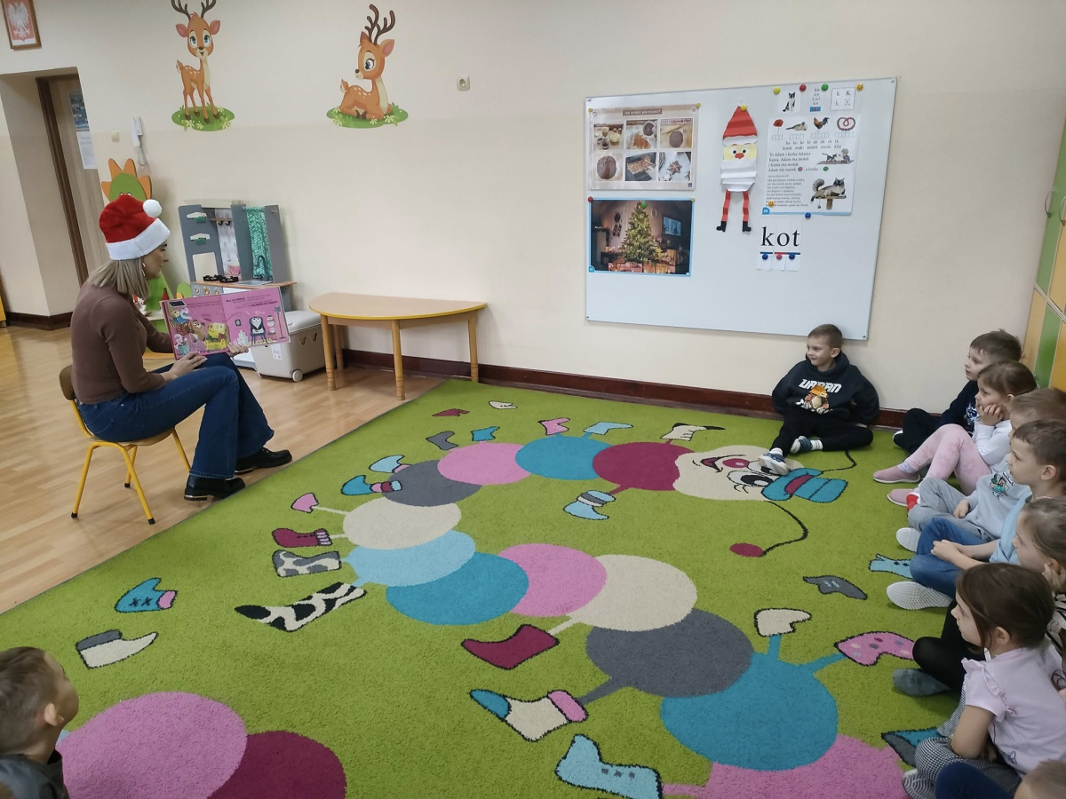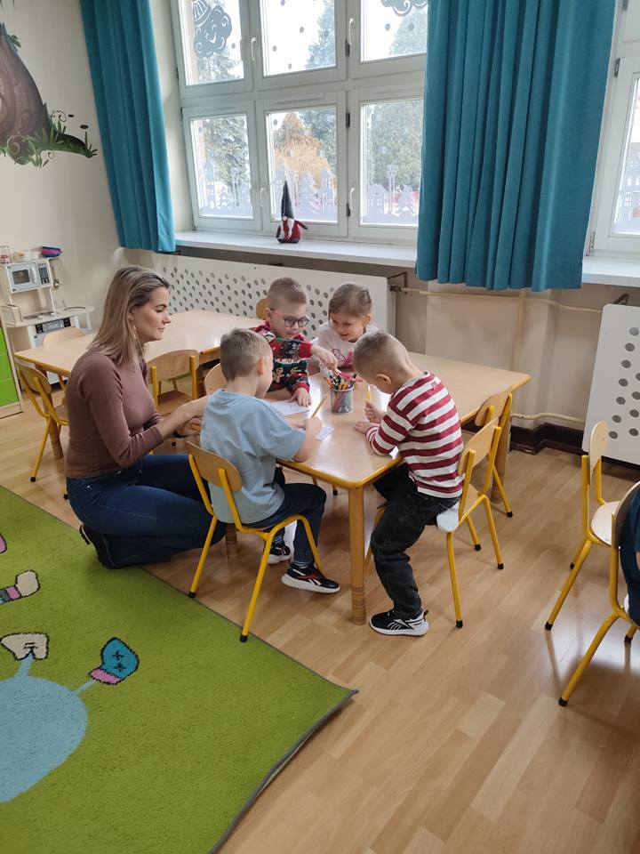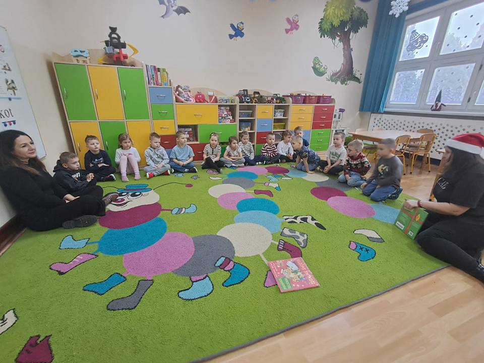 4 grudnia kontynuowaliśmy spotkania w ramach realizacji kartek świątecznych. W grupie 5-latków b z Miejskie Przedszkole w Działoszynie zapanował dziś wyjątkowy, świąteczny nastrój. Po wspólnej lekturze książki "Pingwinek i szczeniak - idealne święta" dzieci rozmawiały o dobroci, pomaganiu i radości płynącej z dzielenia się z innymi.