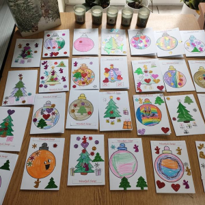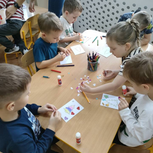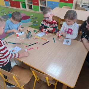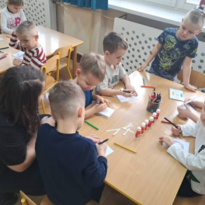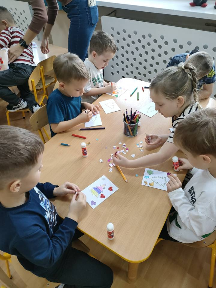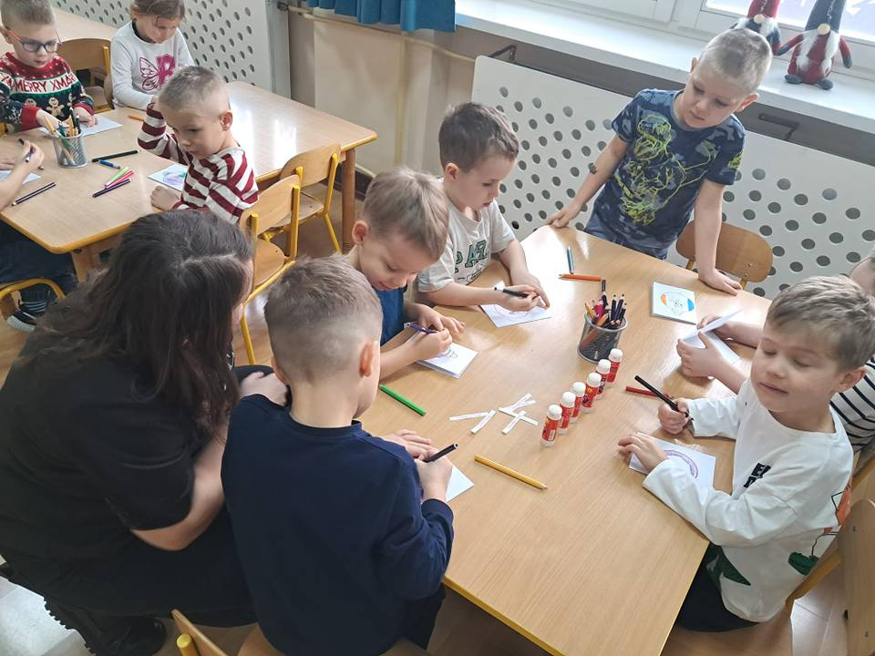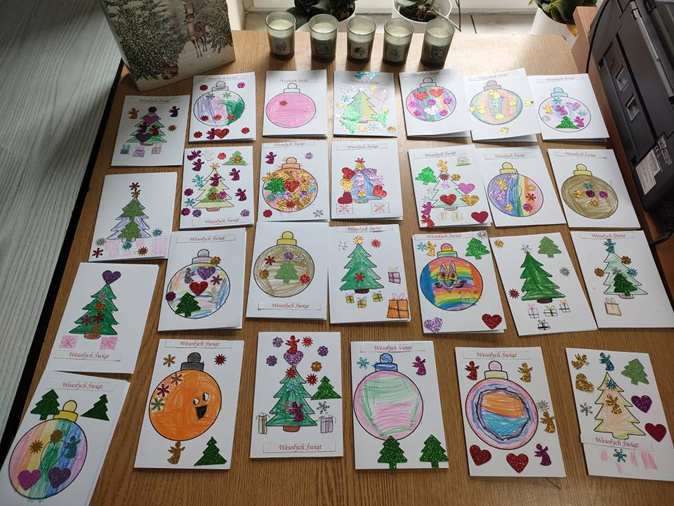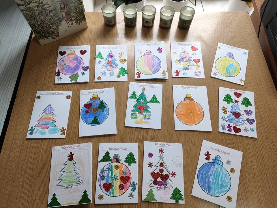 Zainspirowane historia bohaterów, nasi mali artyści z zapałem przystąpili do pracy i wykonali piękne kartki świąteczne dla Seniorów z okolicznych Domów Pomocy Społecznej.