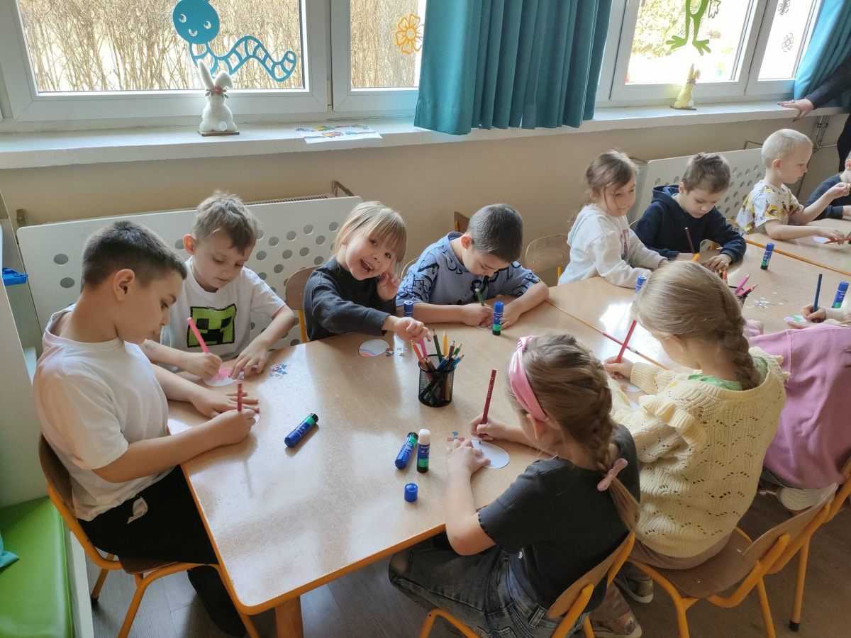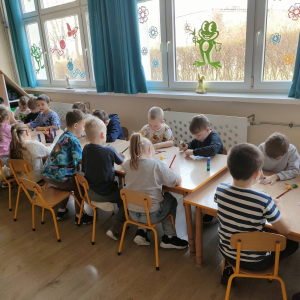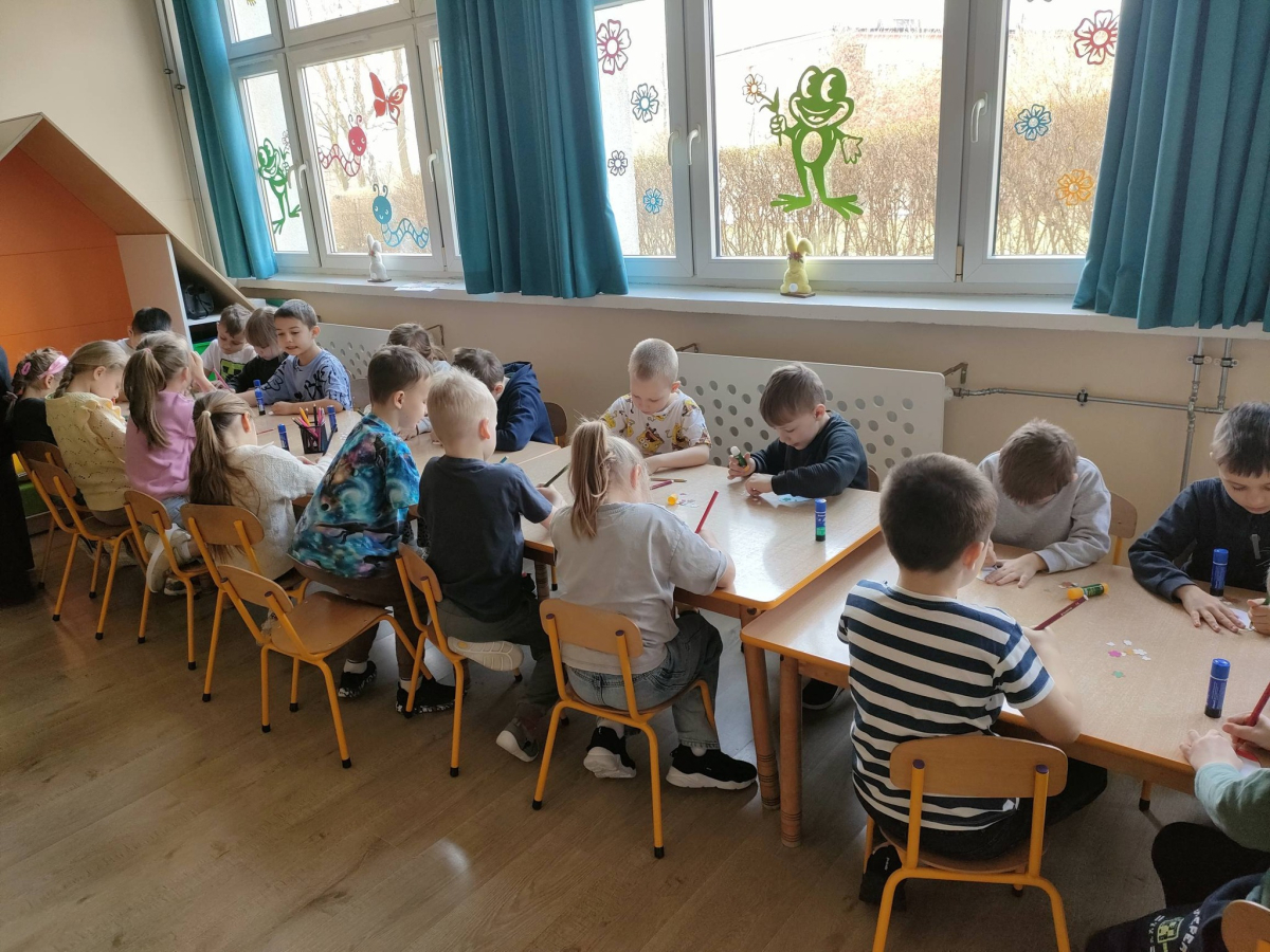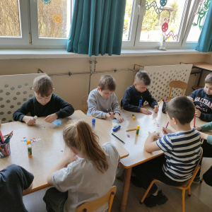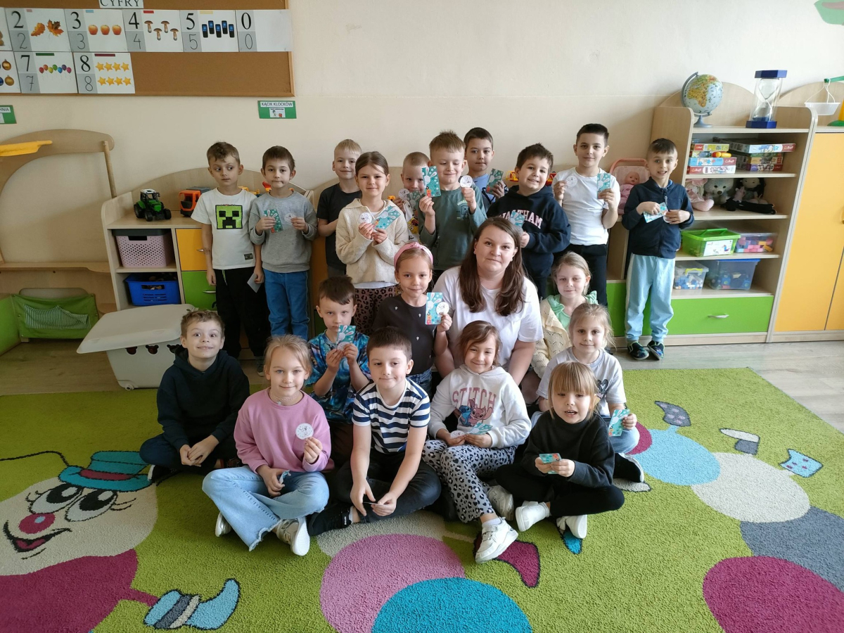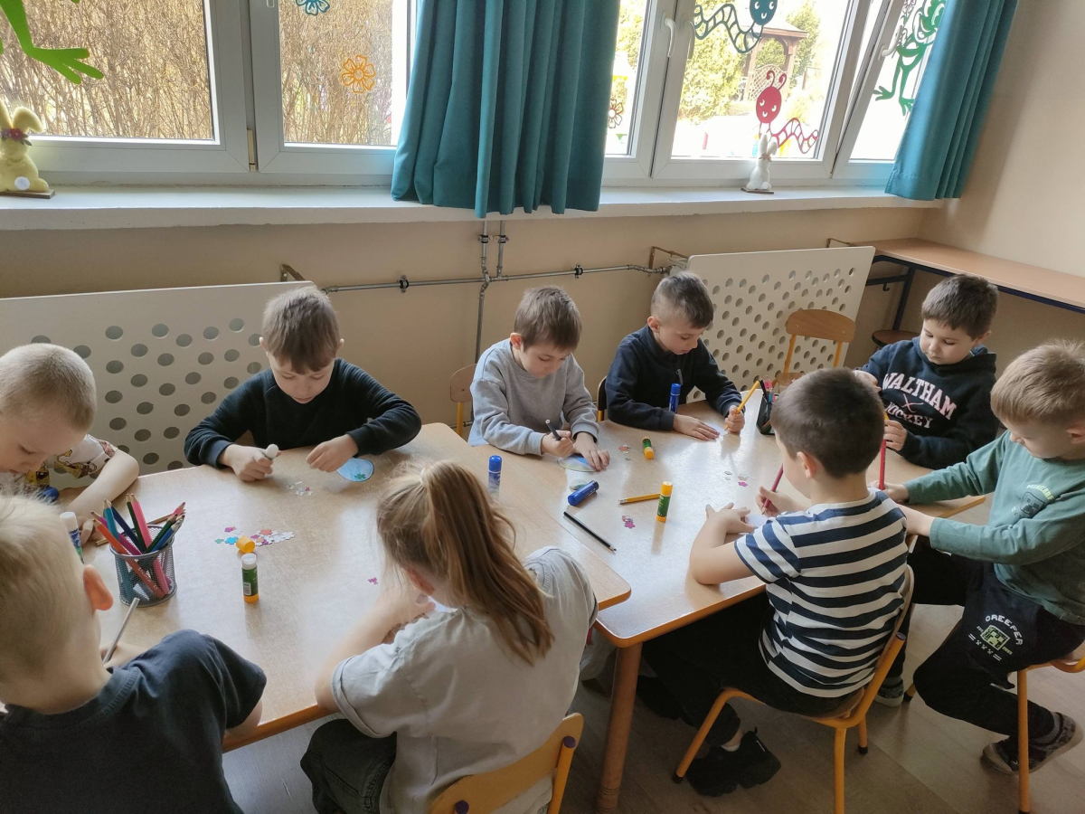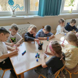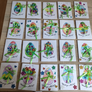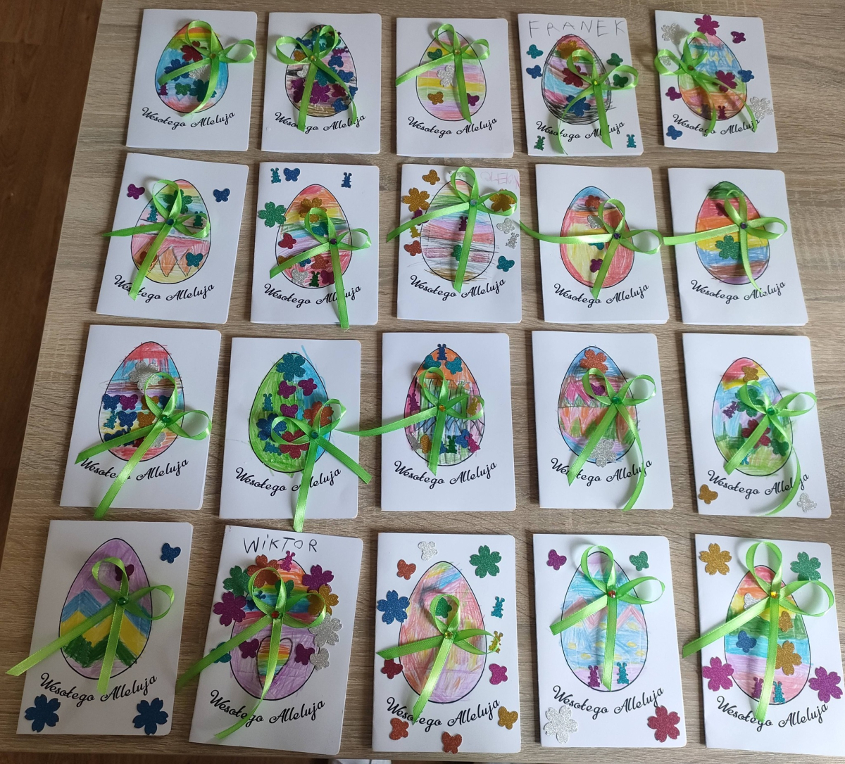 19 marca przedszkolaki z grupy 6-latki B z wielkim zaangażowaniem wykonały kartki świąteczne dla podopiecznych DPS oraz Środowiskowych Domów Samopomocy z terenu naszej gminy.