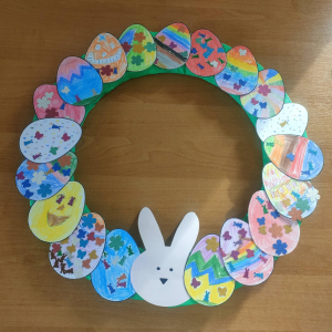 W części plastycznej powstały piękne, kolorowe wianki z jajek, które sprawiły dzieciom wiele radości.