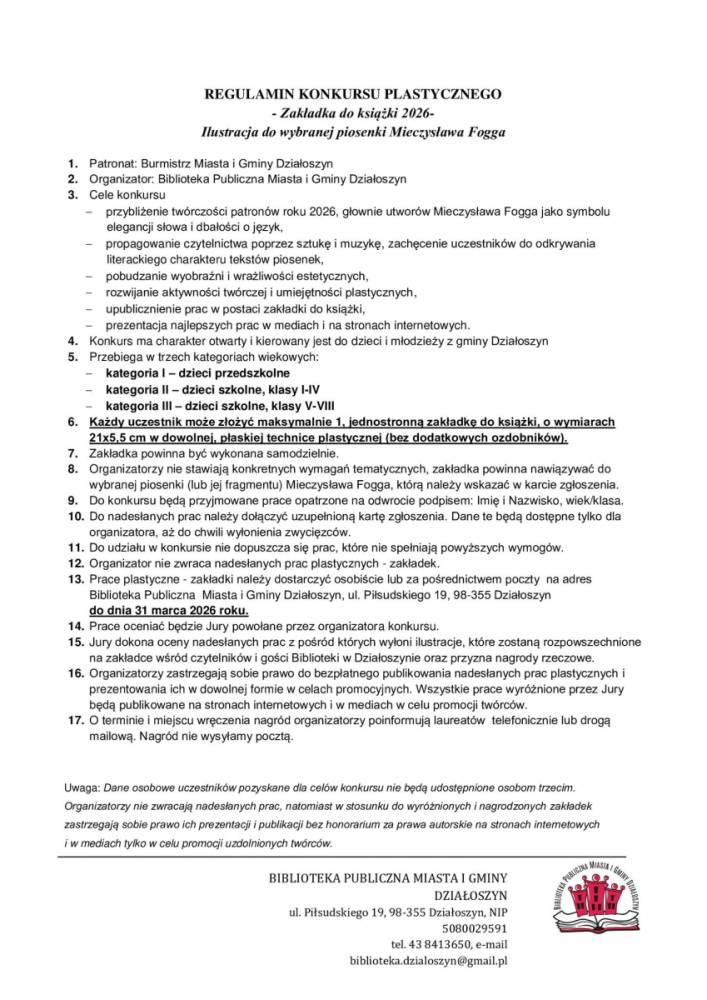 Szczegóły w załączonym regulaminie. Zapraszamy do udziału!