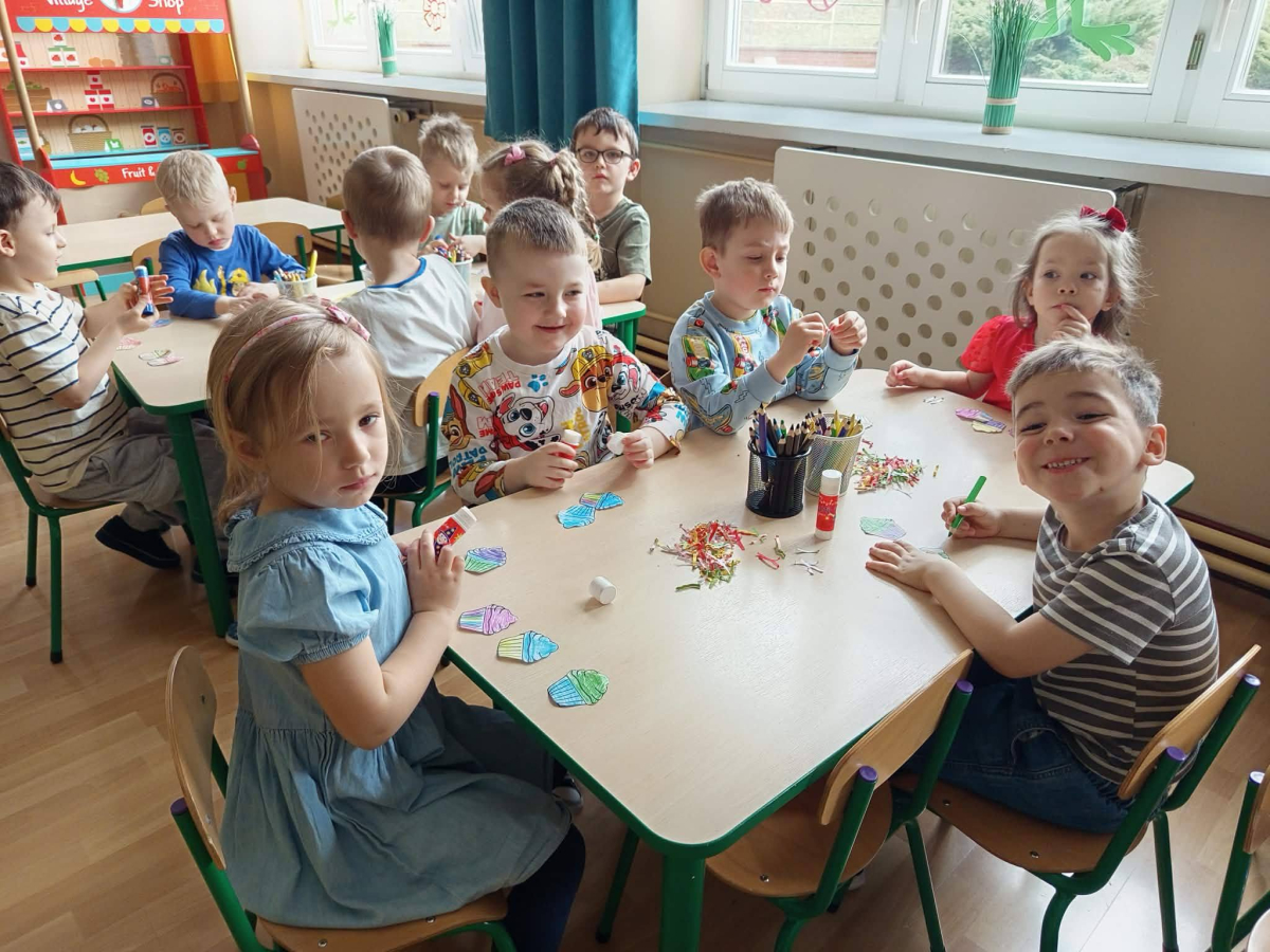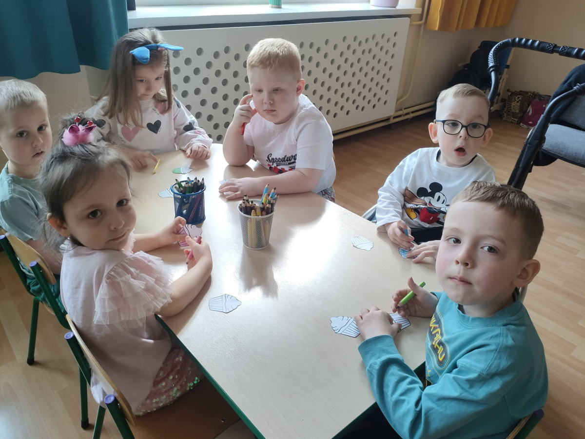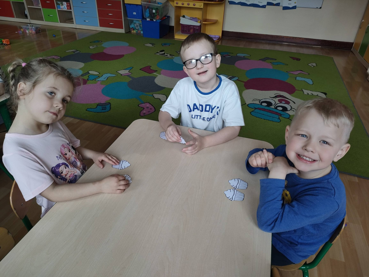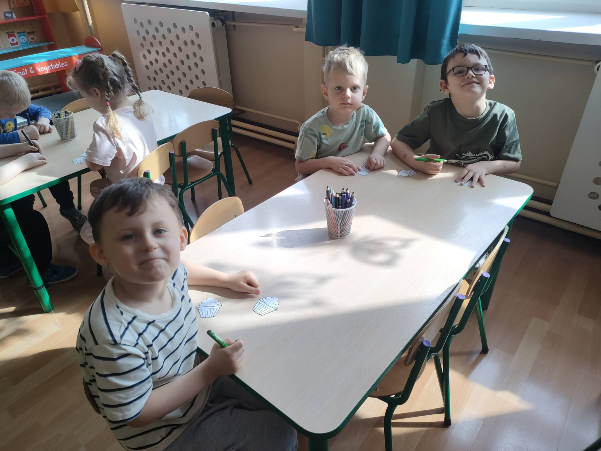 Przedszkolaki z grupy 4 - latki z ogromnym zainteresowaniem wysłuchały książki pt. „Chmurka i Burza pieką ciasto”, a następnie same wcieliły się w małych cukierników i stworzyły piękne, kolorowe babeczki.