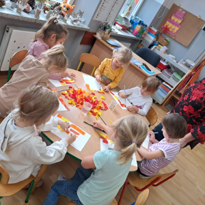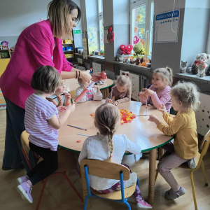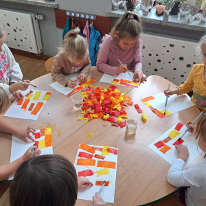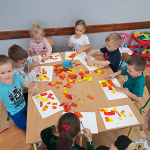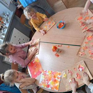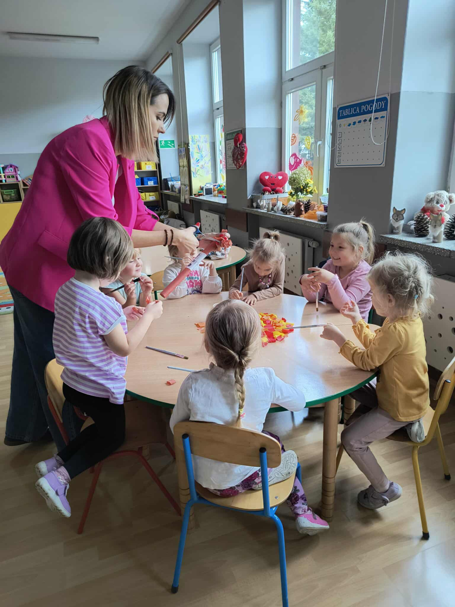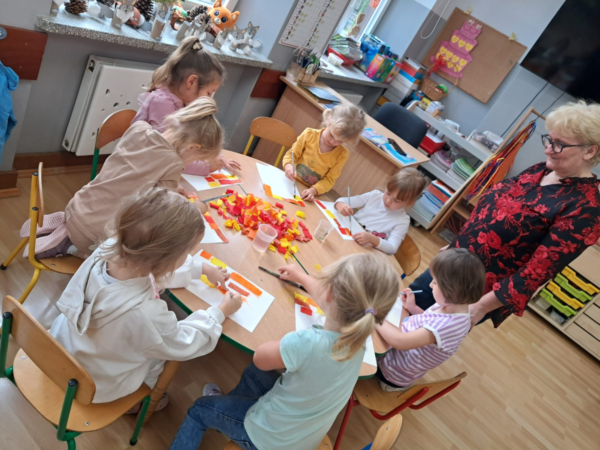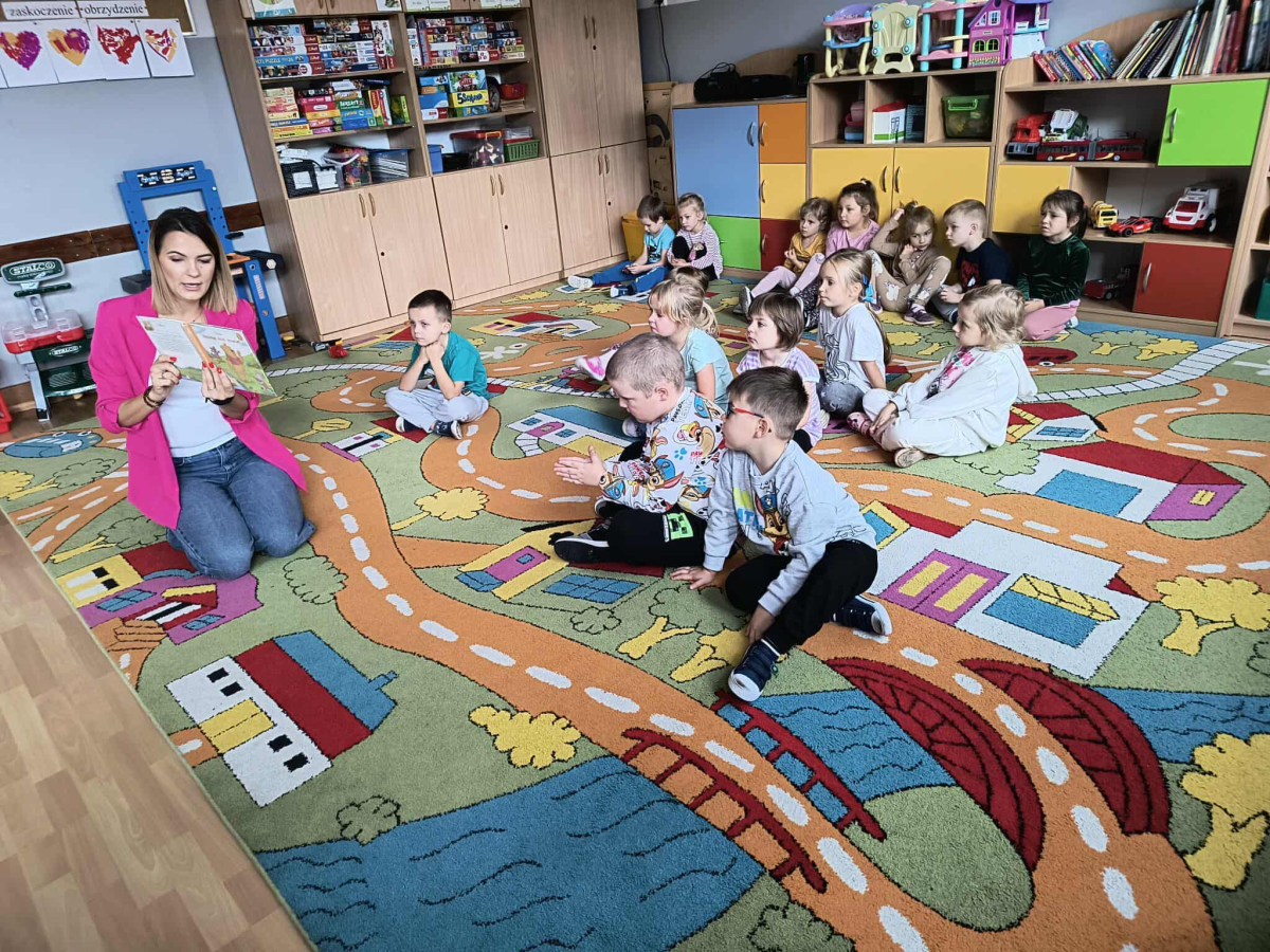 8 października odwiedziliśmy grupę przedszkolaków w Zespole Szkolno-Przedszkolnym w Trębaczewie. Dzieci wysłuchały historii o Kubusiu Puchatku „Dlaczego pada deszcz”, poznając przygody ulubionego misia i jego przyjaciół. Po lekturze przedszkolaki z zapałem wykonały pracę plastyczną „jesienne liście”, wykorzystując technikę barwienia bibułą i szablonu. Spotkanie przebiegło w radosnej atmosferze i zachęciło najmłodszych do sięgnięcia po książki oraz rozwijania wyobraźni.