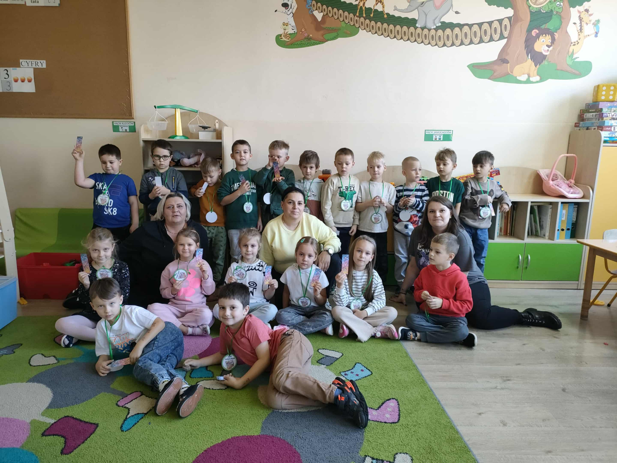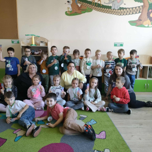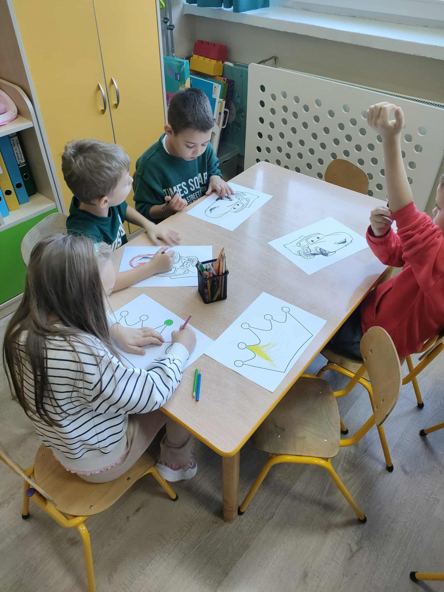 6 listopada 2025 r. mieliśmy ogromną przyjemność odwiedzić przedszkolaków z Miejskiego Przedszkola w Działoszynie – grupę 6-latków B. Spotkanie odbyło się z okazji Dnia Postaci z Bajek, dlatego nie zabrakło dobrej zabawy, śmiechu i magicznej atmosfery! Dzieci wspaniale poradziły sobie z bajkowymi zagadkami i łamigłówkami, udowadniając, że świetnie znają swoich ulubionych bohaterów. Wysłuchały także uroczej historii „Kicia Kocia w bibliotece”, dzięki której dowiedziały się, jak ciekawym miejscem może być biblioteka. Na zakończenie każdy przedszkolak wykonał pracę plastyczną – kolorową koronę lub radosnego Zygzaka.