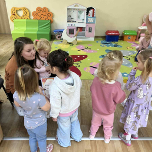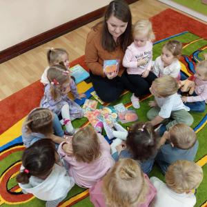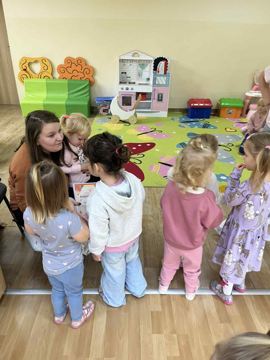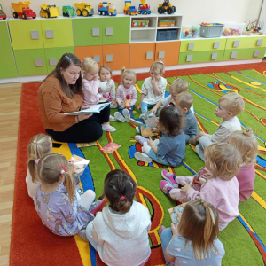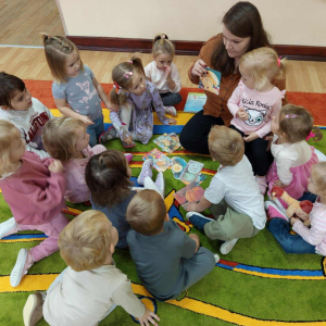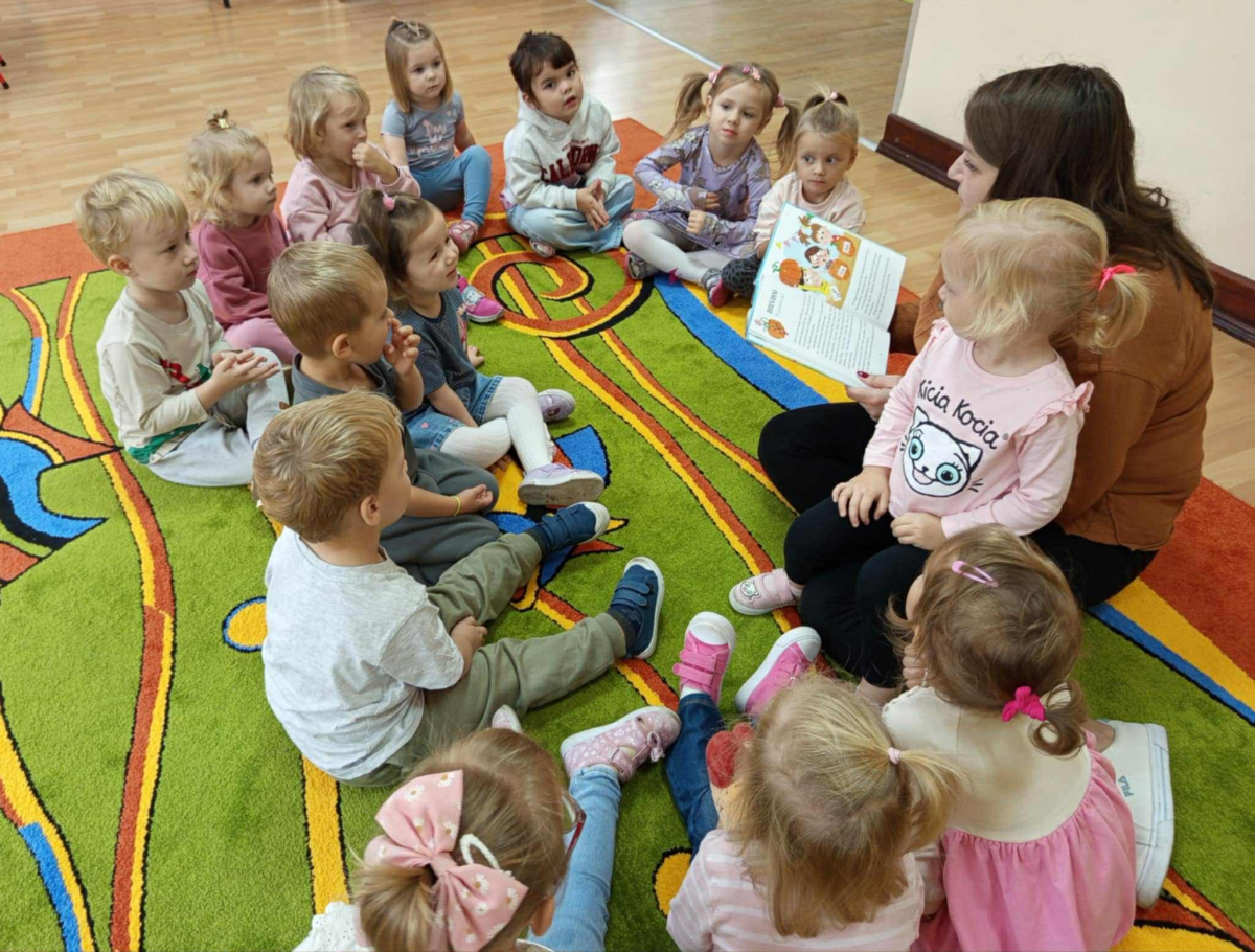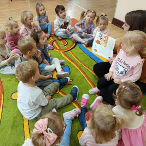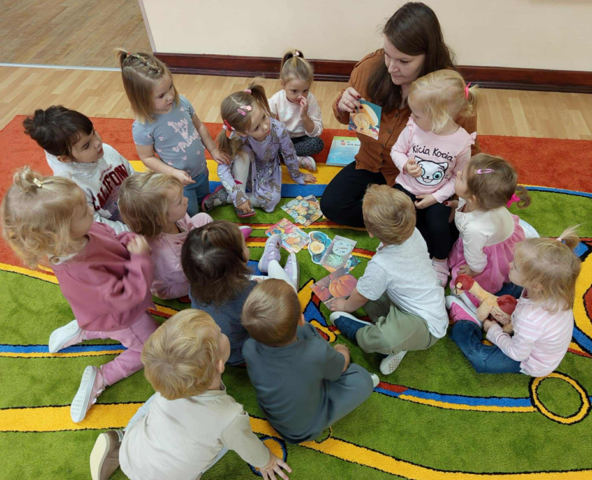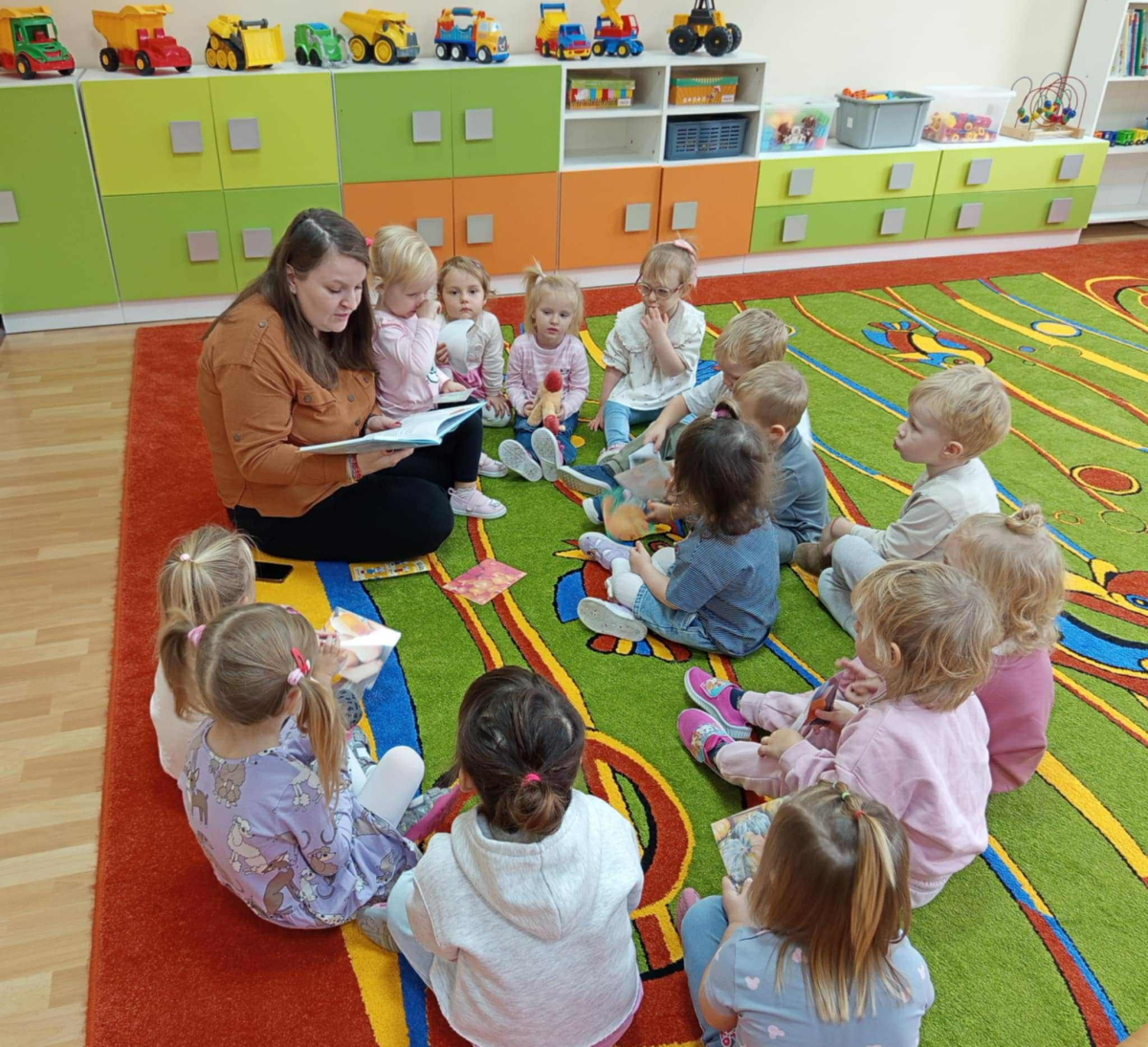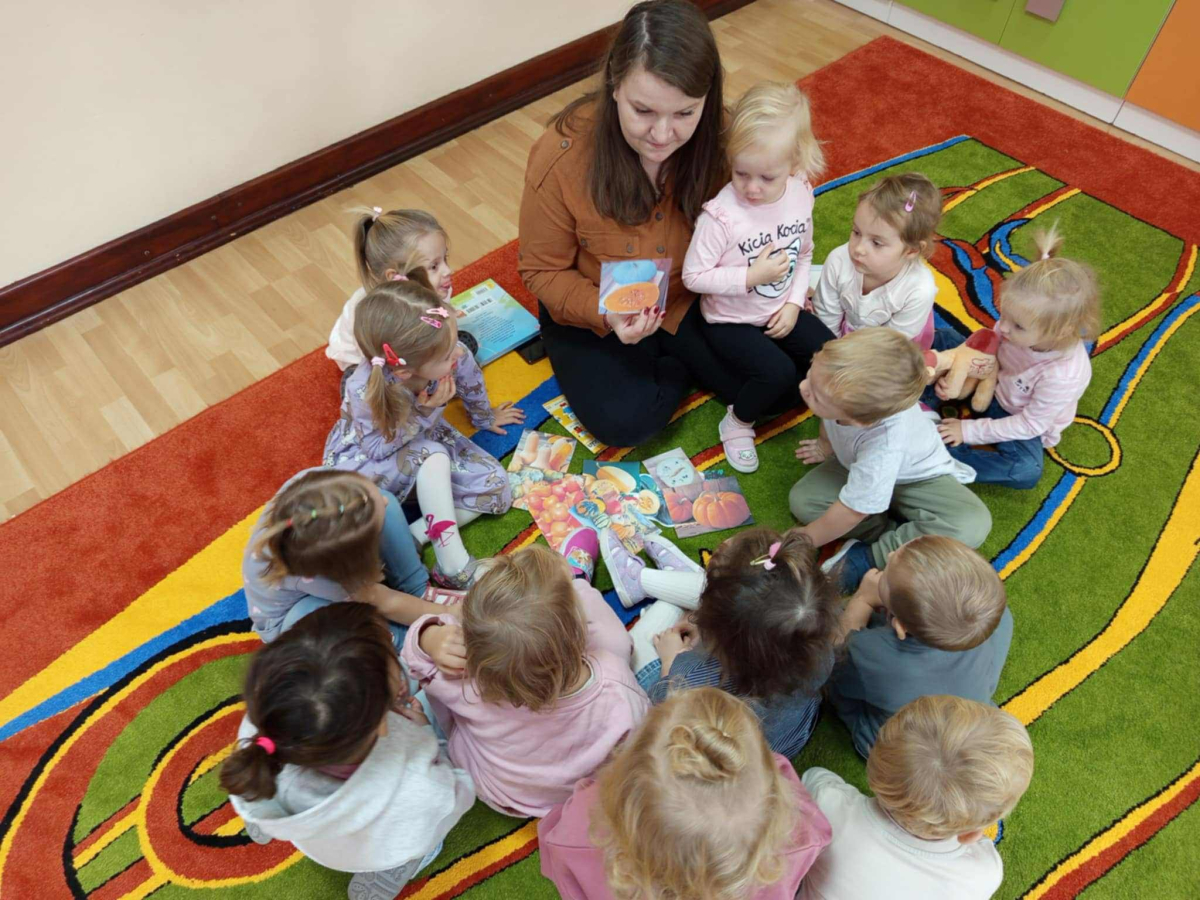 Lekcja biblioteczna z przedszkolakami, grupa 3-latków