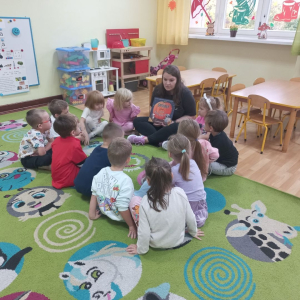 24 października znów odwiedziliśmy przedszkolaki z Miejskiego Przedszkola w Działoszynie, tym razem grupę 4-5 latków. Tematem spotkania była, jesień i jej dary, jeżyk. Dzieci wysłuchały również o pracy w bibliotece oraz opowiadania pt. „Śmiały pan Jeża Nieśmiałka”. Na zakończenie wykonały piękną pracę plastyczną – „Kolorowy jeżyk”.