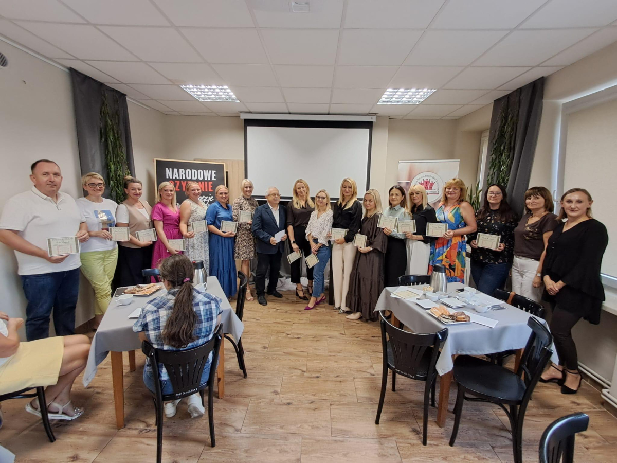 Nie zabrakło także krótszych pieśni oraz fraszek, które zaprezentowali: Pani Elżbieta Tasarz - emerytowana bibliotekarka, Pan Piotr Majewski - nauczyciel z ZSP w Raciszynie ze Szkołą Filialną w Kolonii Lisowice, Pani Marzena Gołda i Pani Anita Soliwoda - nauczycielki z Miejskie Przedszkole w Działoszynie, Pani Anna Gejęcka - nauczycielka ze Szkoła Podstawowa im. Ks. Jana Twardowskiego w Trębaczewie oraz ponownie Pan Marian Konieczny - emerytowany nauczyciel.