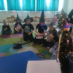 28 listopada mieliśmy przyjemność odwiedzić Miejskie Przedszkole w Działoszynie, gdzie spotkaliśmy się z pełną energii i uśmiechu grupą 6-latków B, aby wspólnie świętować Andrzejki. Przedszkolaki z wielkim zaangażowaniem brały udział w naszych bibliotecznych wróżbach. Sprawdziliśmy przyszłe zawody, odkrywaliśmy imiona przyszłych sympatii, a także odczytywaliśmy przyszłość z kolorowych karteczek oraz magicznej kuli szczęścia. Nie zabrakło również słodkiej zabawy- każdy otrzymał cukierek z ukrytą wróżbą.