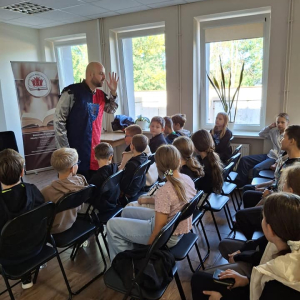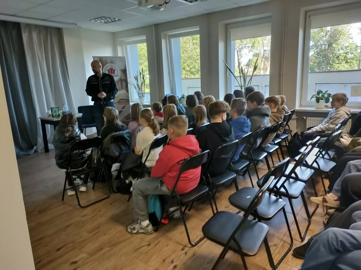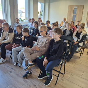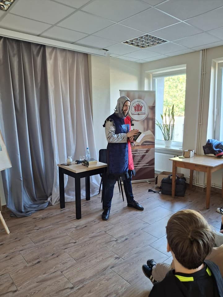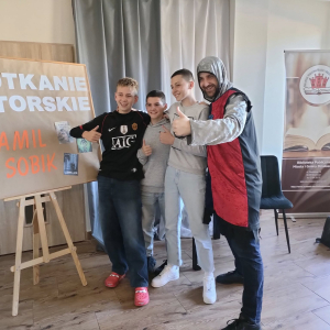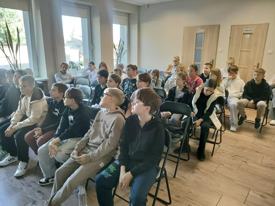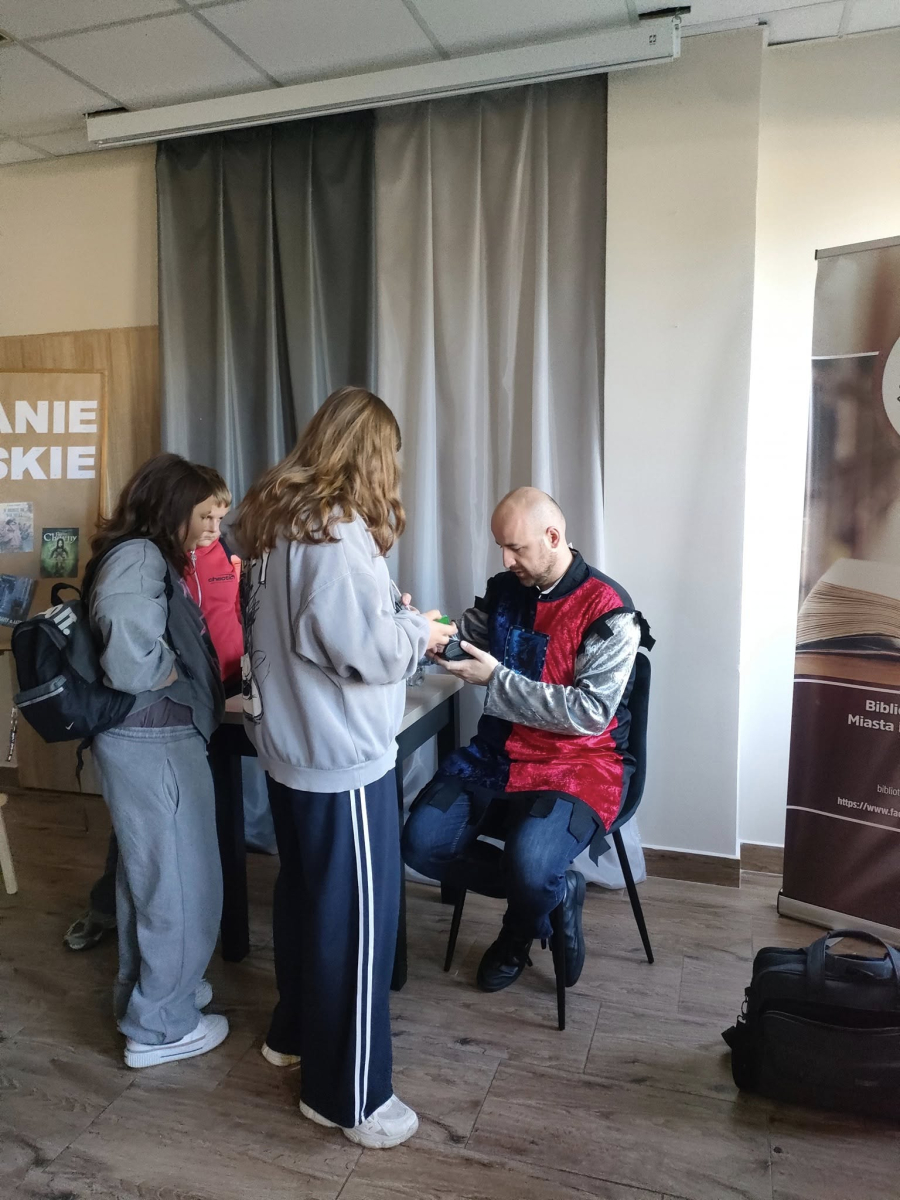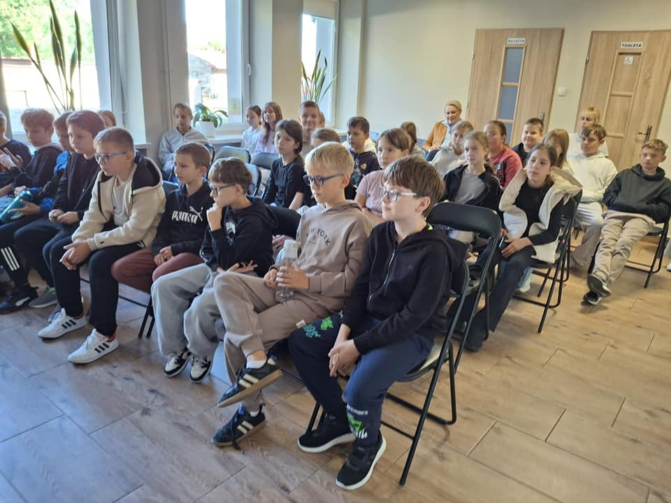25 września 2025 r. odbyły się spotkania autorskie z Kamilem Sobikiem zorganizowane przez naszą Bibliotekę. Autor kolejno spotkał się z grupą młodzieży z Zespołu Szkolno-Przedszkolnego ze Szkołą Filialną w Kolonii Lisowice, by odpowiedzieć na ważne pytania: "Czy gry video mogą uczyć nas historii? Czyli ile faktów historycznych zawarto w grach video?" oraz grupą uczniów z Zespołu Szkolno-Przedszkolnego, Szkołą Podstawową im. ks. Jana Twardowskiego w Trębaczewie opowiadająca o tym "Skąd się wzięły smoki, elfy, czarodzieje w literaturze?"