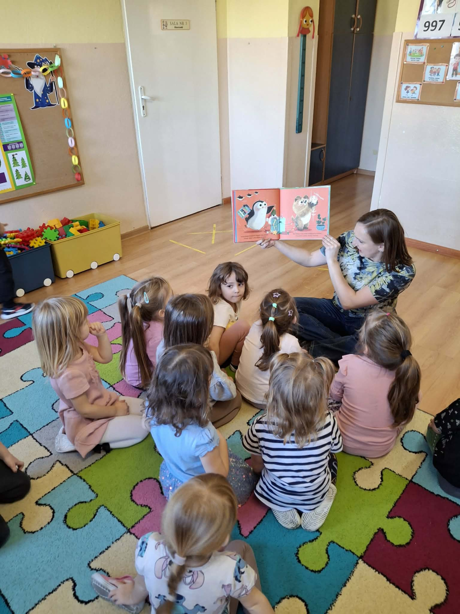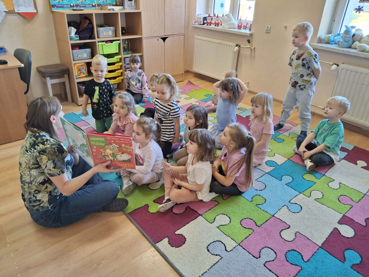 Na zakończenie nie zabrakło świątecznego akcentu. Na podstawie książki „Pingwinek i szczeniak. Idealne święta” rozmawialiśmy o tradycji wspólnego ubierania choinki, wprowadzając wszystkich w magiczny nastrój nadchodzących Świąt.